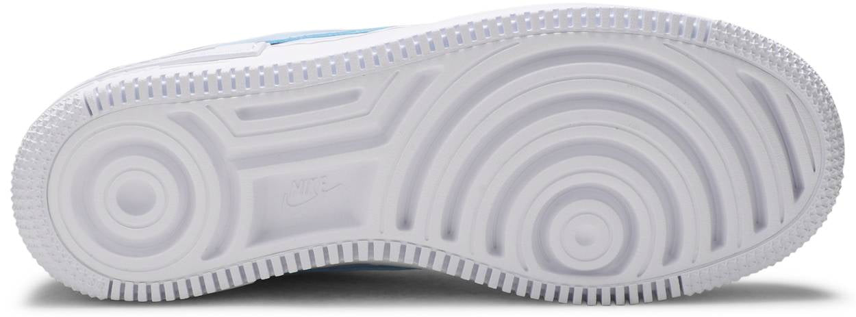 The Nike Air Force 1 Shadow ‘Hydrogen Blue’ treats the classic silhouette to a uniquely reconstructed aesthetic. A monochromatic pale blue finish is executed on a leather build that doubles up the eyestay, forefoot overlay and heel tab, while also detaching the lateral Swoosh and collar flap. An exaggerated white foam midsole, giving the shoe a lifted look, rides on a cored-out rubber outsole that’s good for reduced weight.