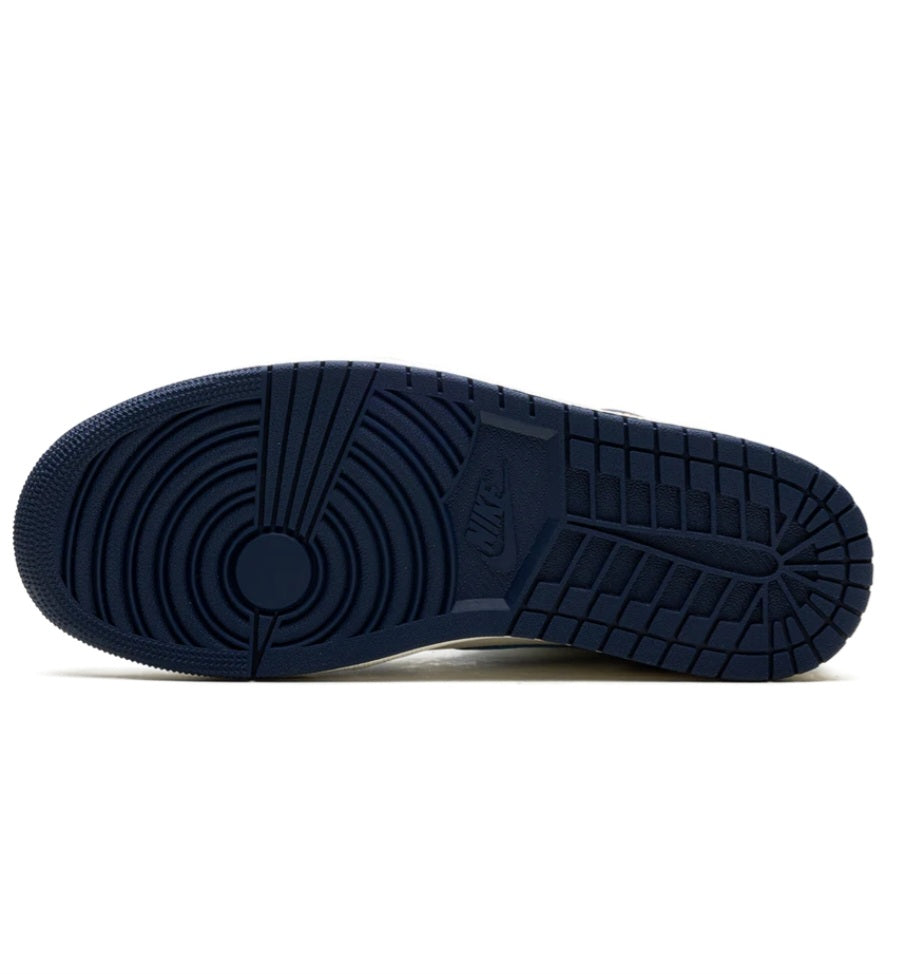 The Women's Air Jordan 1 Retro High OG 'First in Flight' dresses the timeless silhouette in a familiar color palette inspired by Michael Jordan's alma mater. The upper features a tumbled leather base in a subtle off-white finish, contrasted by powder blue nubuck on the forefoot overlay and Swoosh. Navy blue accents land on the leather heel overlay and collar flap, marked with an amber Wings logo on the lateral side. Atop the nylon tongue, a woven tag displays the classic Nike Air logo with 'First in Flight' branding. The high-top is mounted on a sturdy rubber cupsole, fitted with encapsulated Air-sole cushioning in the heel.