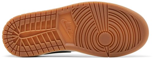 The Women's Air Jordan 1 Retro Low OG 'Oxidized Green' carries a white leather upper, contrasted by dark green accents on the signature Swoosh, collar lining and back tab. The latter displays the retro Wings logo, while a Nike Air tag graces the breathable nylon tongue. A vintage off-white finish is applied to the midsole, fitted with encapsulated Air-sole cushioning and supported by a green rubber outsole.