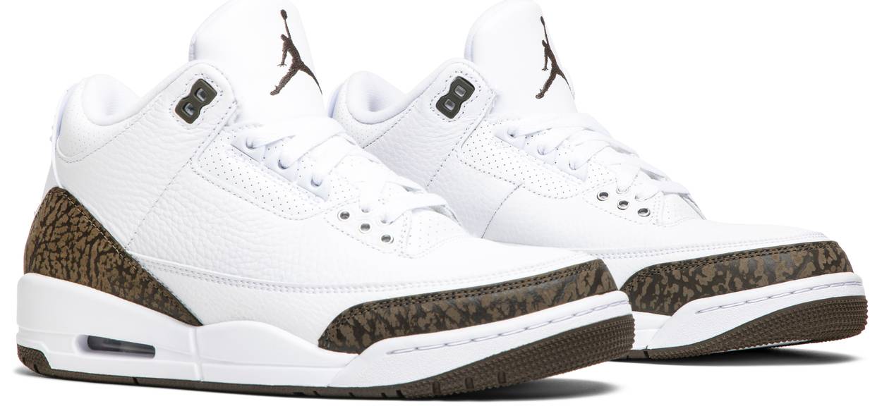 The Air Jordan 3 Retro ‘Mocha’ 2018 brings back the distinctive colorway first released in 2001. The mid-top keeps the original build intact, featuring a white tumbled leather upper accented with contrasting pops of Dark Mocha on the shoe’s signature elephant-print overlays. The brown hue also appears on the outsole and Jumpman logo hits that adorn the tongue and heel panel.