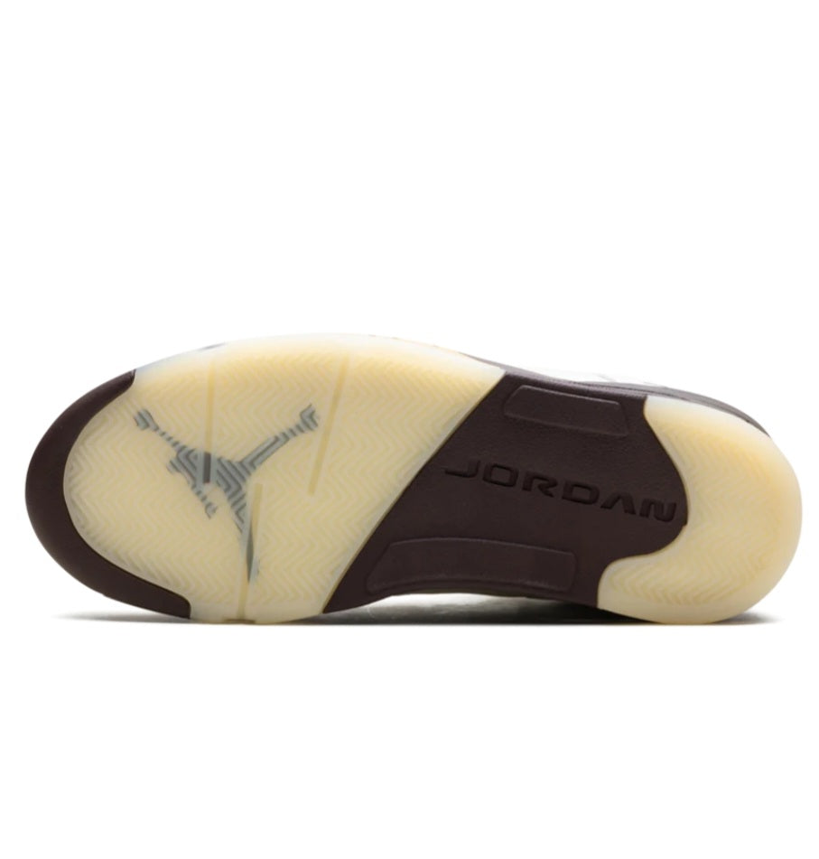 The Air Jordan 5 "Golden Ticket" is a women's colorway of Michael Jordan's fifth signature shoe. Taking inspiration from Charlie And The Chocolate Factory, the AJ5 "Golden Ticket" has a brown midsole and metallic gold accents reminiscent of a chocolate bar. This women's Jordan 5 has all the sneaker's signature design elements, including the fighter-jet inspired teeth around the midsole and the number "23" embroidered by the heel.