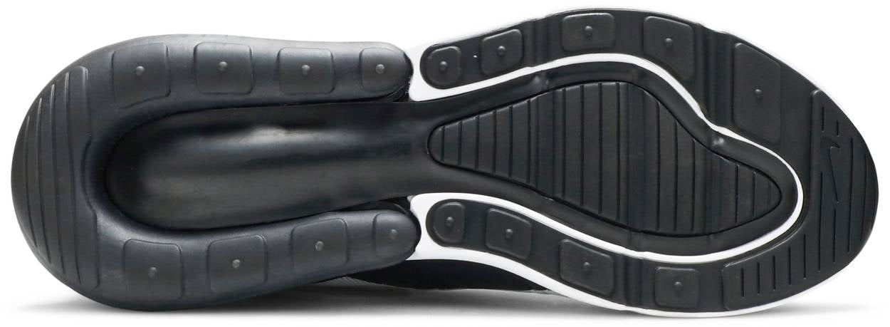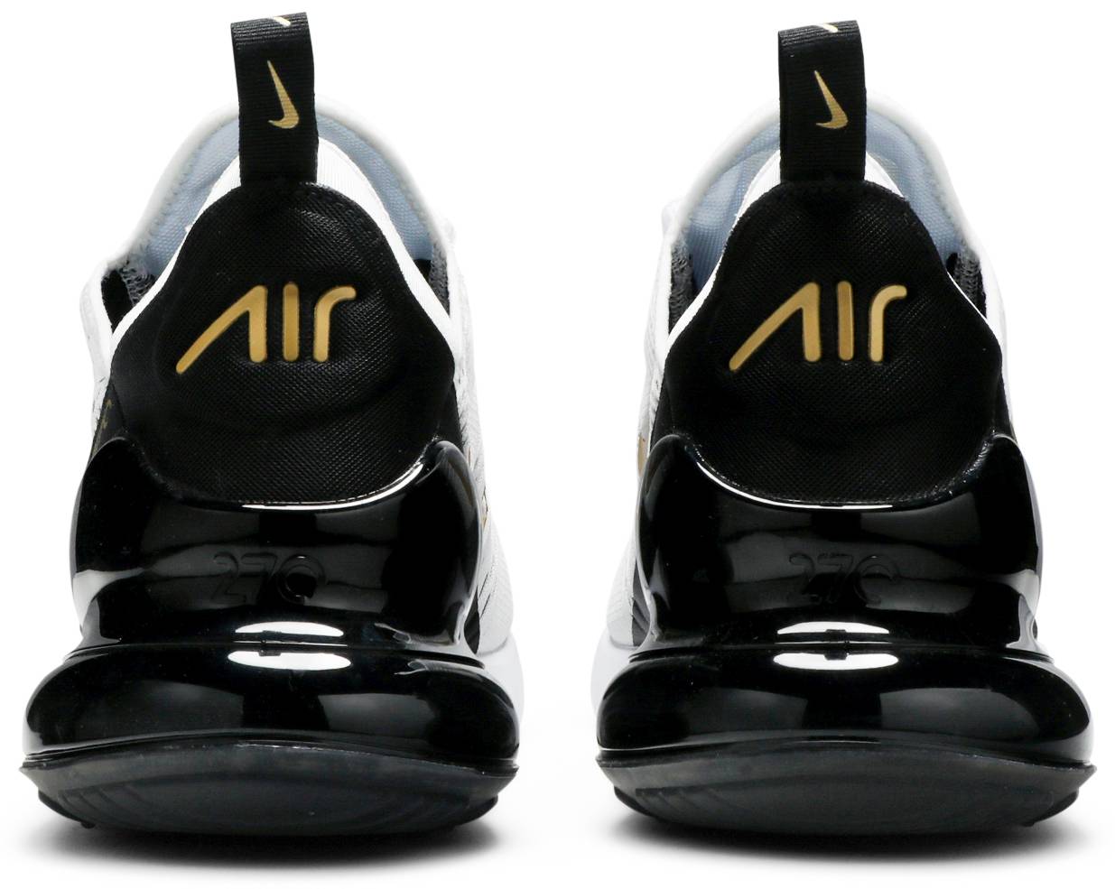 Designed by Dylan Raasch, the Nike Air Max 270 ‘White Gold’ adds metallic gold detailing to a classic and sporty black and white design. The sneaker is constructed with a lightweight white knit upper with black synthetic overlays for added durability. The shoe's branding is embellished in bright metallic gold at the tongue and quarter panel. An oversized 270-degree Air Unit in a glossy black adds a sleek to the shoe.