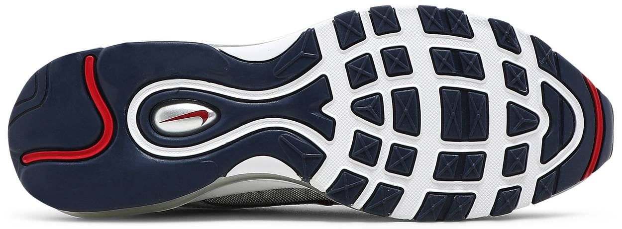 The sneaker itself is a rework of the original “Silver Bullet” Air Max 97 colorway. It features a silver reflective and mesh with the model’s signature radial lines and adds the Puerto Rican flag to the tongue loop as well as the outsole. It also appears that the sneaker will swap its traditional black accents for a dark navy blue.