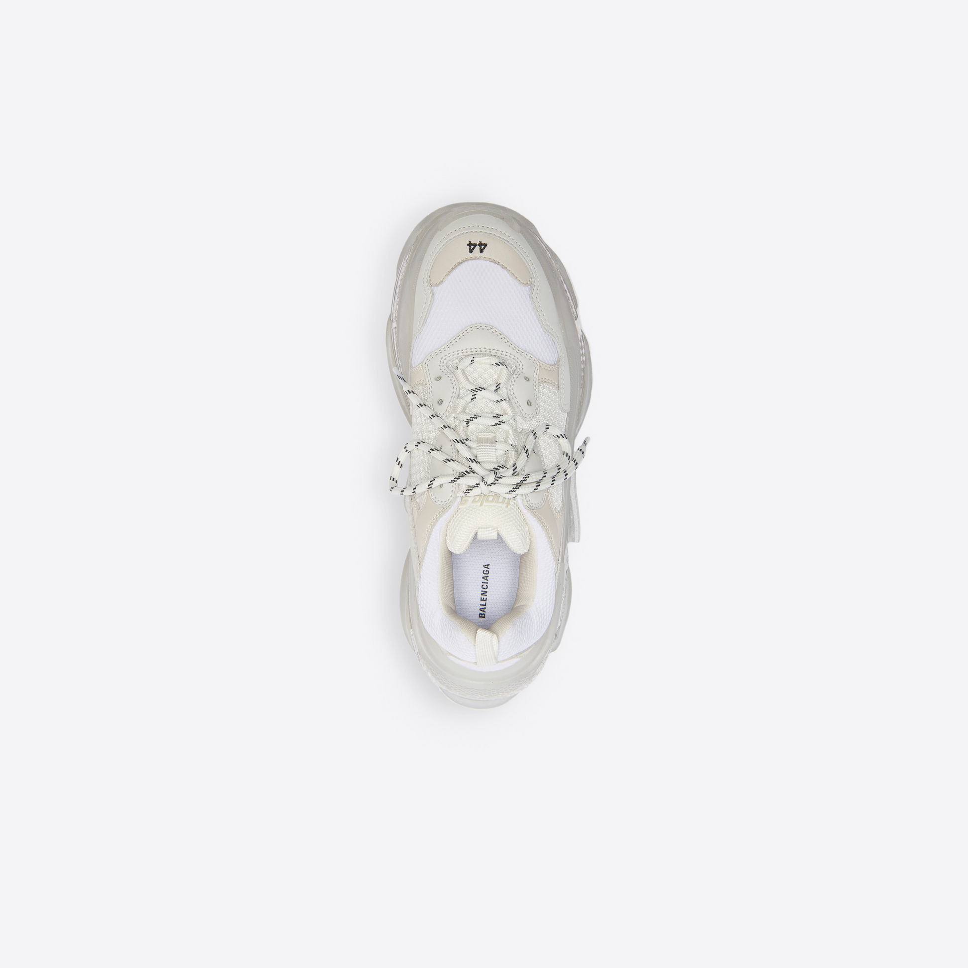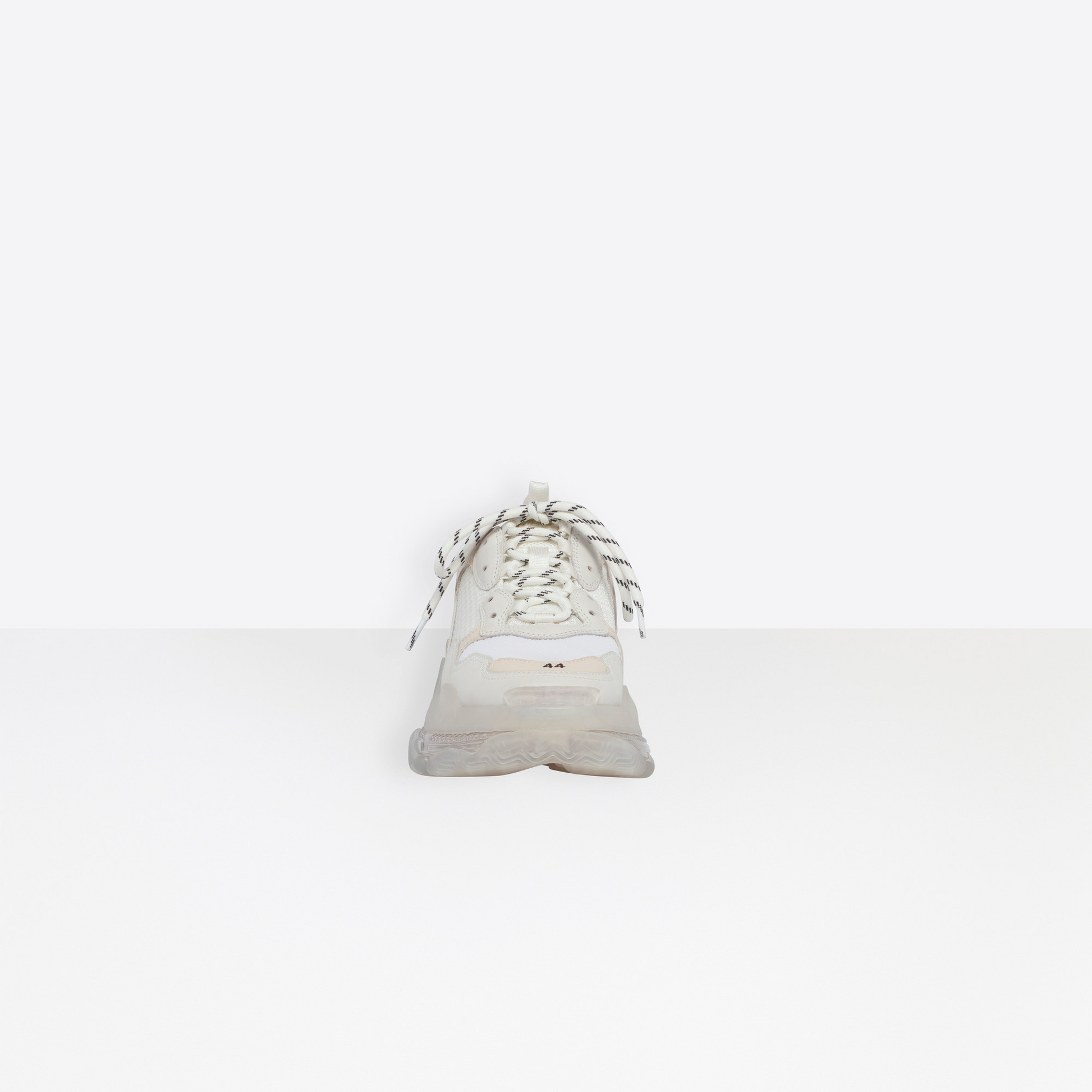 Triple S Clear Sole Sneaker in white calfskin, lambskin and mesh