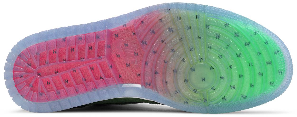 The Air Jordan 1 High Zoom ‘Zen Green’ updates the iconic silhouette with revised cushioning and nontraditional materials. A matte silver Swoosh stands out on the upper, constructed from a blend of smooth black leather with hairy green suede on the toe box and quarter panel. A woven Zoom Air tongue tag gives the nod to the sneaker’s full-length Zoom Air unit, which replaces the traditional Nike Air bag underneath the heel.