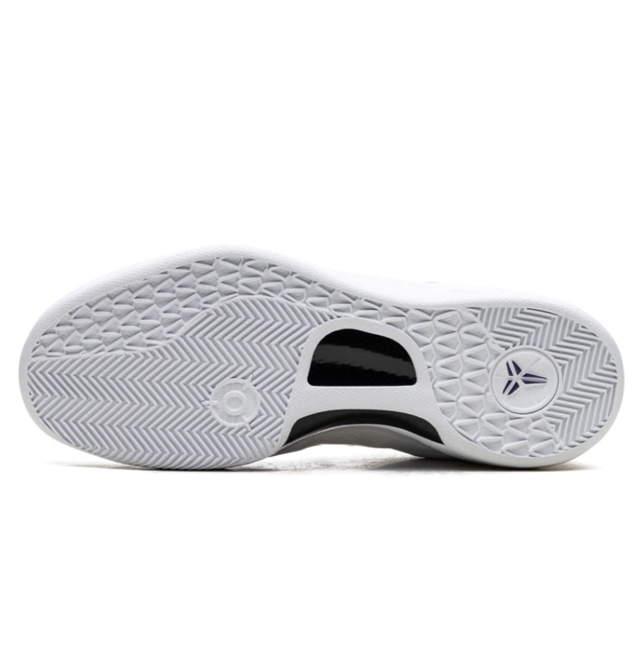 The Nike Kobe 8 Protro 'Lakers Home' dresses the retro silhouette in a white engineered mesh upper. A purple embroidered Swoosh adorns the lateral quarter panel, while Kobe Bryant's sheath logo in University Gold appears on the tongue and back heel. An external TPU heel counter offers rearfoot support, while a drop-in React foam midsole delivers lightweight cushioning with every step. Underpinning the sneaker is an exposed carbon fiber shank plate and a herringbone traction rubber outsole.
