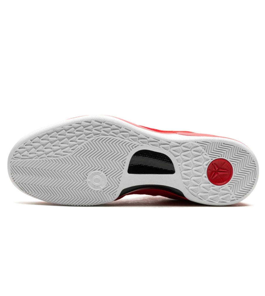 The Nike Kobe 8 Protro 'University Red' is crafted from crimson engineered mesh with contrasting white accents, including an embroidered Swoosh and Kobe Bryant's signature sheath logo on the tongue and back heel. Lightweight cushioning comes courtesy of a full-length drop-in React foam midsole. Underfoot, the white rubber outsole features a herringbone traction pattern and an exposed carbon fiber shank.