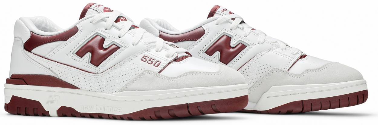 The New Balance 550 ‘Burgundy’ delivers a simplistic two-tone colorway of a vintage silhouette originally designed for the ‘80s hardwood. The low-top utilizes a white leather upper with a tonal suede forefoot overlay and padded mesh collar. Contrasting burgundy accents land on the leather collar overlay and heel clip, as well as well as the various branding elements. The sneaker is mounted on a durable rubber cupsole, fitted with an EVA wedge for lightweight cushioning.