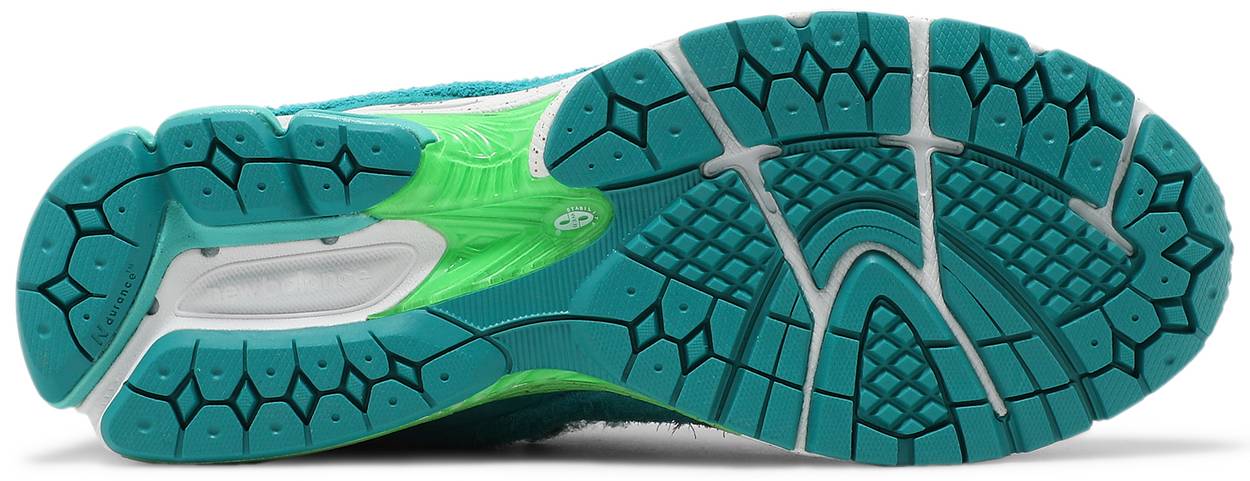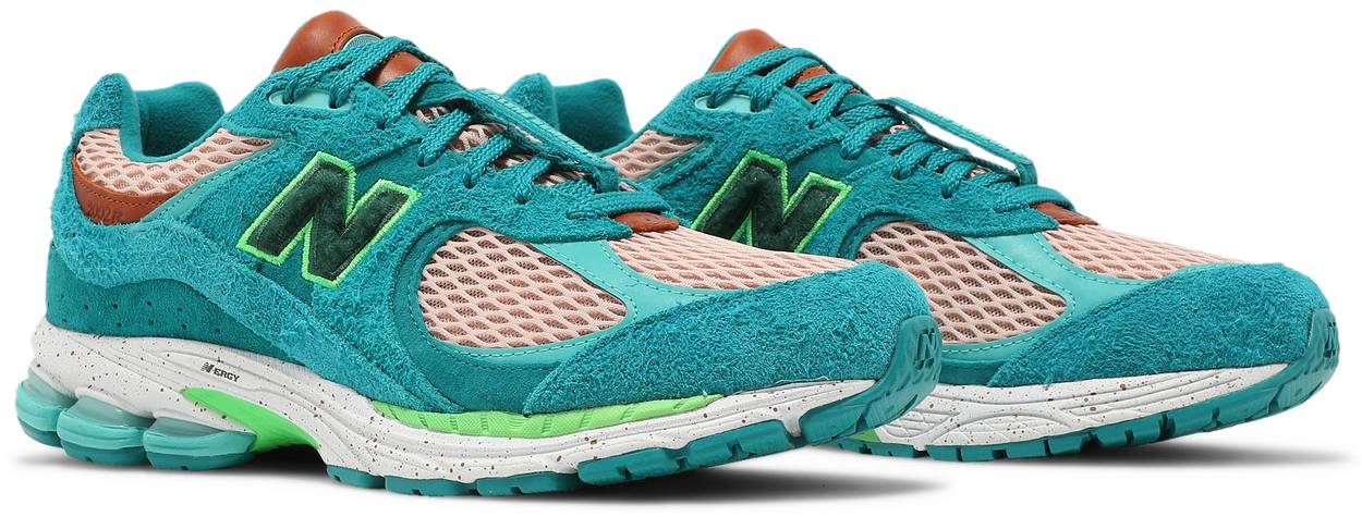 Developed in collaboration with the LA-based footwear designer, the Salehe Bembury x New Balance 2002R ‘Water Be The Guide’ takes inspiration from the universal solvent. The upper is constructed from open pink mesh with shaggy suede overlays in a vibrant aqua hue. Contrasting green hits appear on the heel and shearling ‘N’ logo, while rustic brown leather is utilized on the tongue and collar. Soft cushioning is provided by a speckled NERGY foam midsole with a Stability Web TPU shank for improved stability.