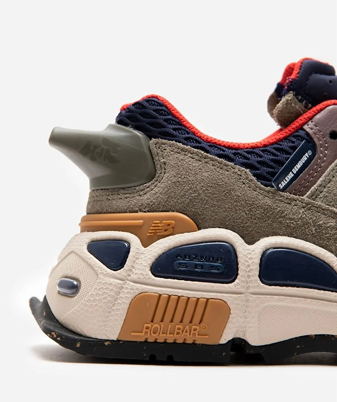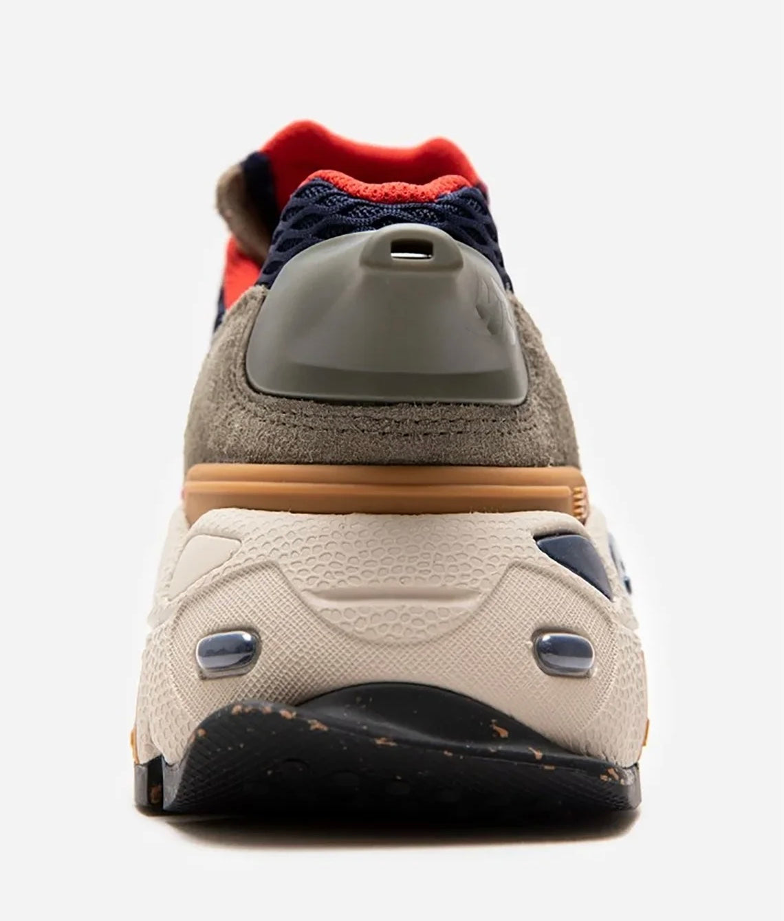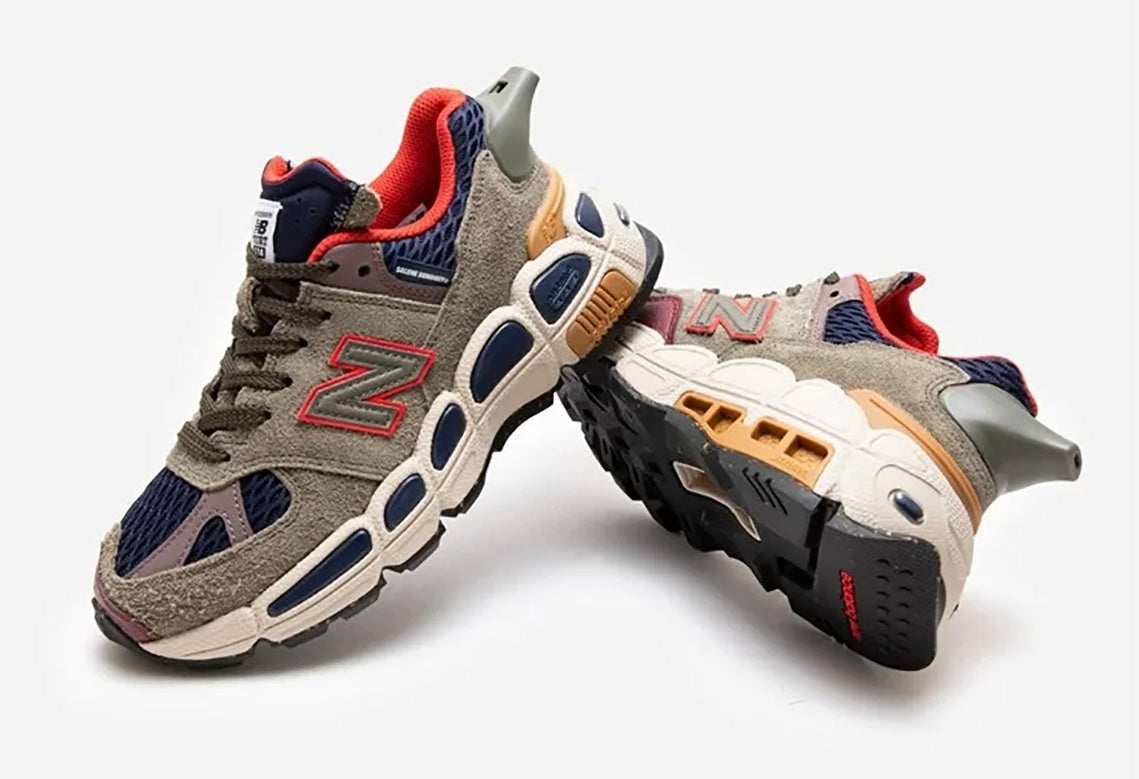Palette aside, the model itself is a melting pot of influences. The original 574 lends its base, which is quickly tweaked and upgraded with elements from the Test Run 3.0, the 990v3, and the archived 755. What’s more, Bembury has added to the heel a high pitch whistle, which emphasizes the need for safety when braving nature. While distinct, the two debut appearances share an inspiration: the yurt, a round tent typically covered with skins or felt. The first option errs towards simplicity, its suede, mesh, and the like dressed primarily in grey. Opposite, the “Multi” is far more varied in aesthetic, its paneling a mix of dark navy, brown, and pops of orange.