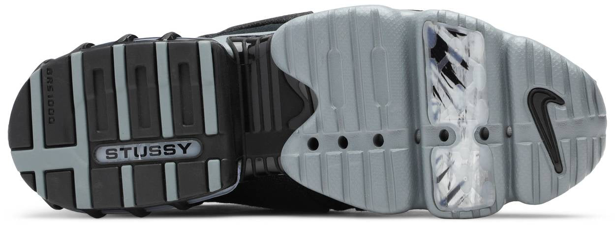 Made in collaboration with the Southern California streetwear brand, the Stussy x Nike Air Zoom Spiridon Caged 2 ‘Black Cool Grey’ utilizes a stealthy monochromatic finish on the upper, constructed from a blend of cotton slub canvas with tonal hemp overlays and open mesh paneling at the toe and quarter panel. The retro runner rides on a neutral grey foam midsole, complete with a painted Zoom Air heel unit encased in a Pebax cage.