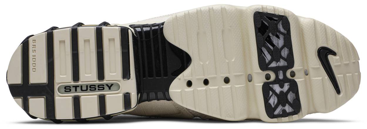 The Stussy x Air Zoom Spiridon Caged 2 'Fossil' released as part of a collaboration between Stussy and Nike. The shoe's upper is built with a mix of mesh and textile, finished in Fossil and contrasted by black branding. Underfoot, the Phylite midsole includes caged Zoom Air in the heel for cushioning.