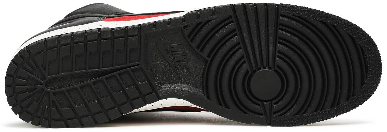 The Undercover x Nike Dunk High 1985 ‘UBA’ delivers Jun Takahashi’s interpretation of the retro hoops shoe, designed for the fictional UNDERCOVER basketball league and featuring the sneaker’s original ‘80s shape and proportions. The upper pairs crimson pebbled nubuck with contrasting overlays in smooth black leather. The lateral heel is marked with Undercover Basketball Association branding, while the opposite side is decorated with an UNDERCOVER logo hit. The high-top is mounted on a modified rubber cupsole with off-white sidewalls covered in speckled detailing.
