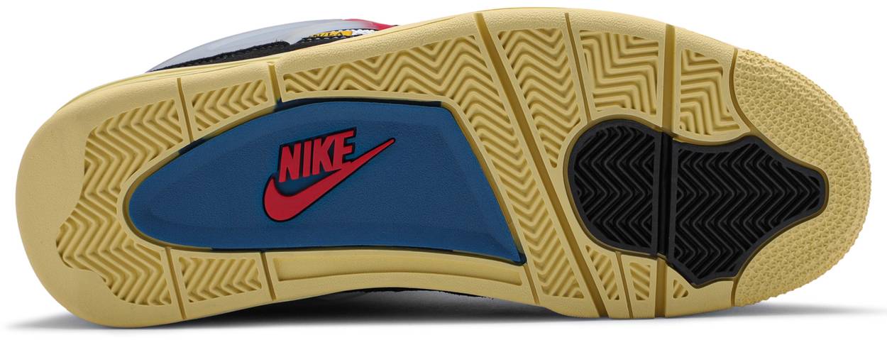 The Union LA x Air Jordan 4 Retro ‘Off Noir’ represents the follow-up effort to the duo’s highly coveted Air Jordan 1 collaboration from 2018. The updated design features a black suede upper with matching black mesh on the toe box and blue mesh around the collar. The semi-translucent structural wings are attached to molded red eyelets, matching the woven Air Jordan tag atop the padded tongue and Nike Air branding on the heel. The TPU wings are filled in, reminiscent of an original Tinker Hatfield sketch of the AJ4, while the AIR JORDAN tag usually found on the inside of the tongue conveys a unique look, like someone folded the tongue over to expose the inside tag. Finally, a 'UN/LA' tag on the side panel shows the Union heritage and a yellowed midsole conveys a vintage aesthetic.