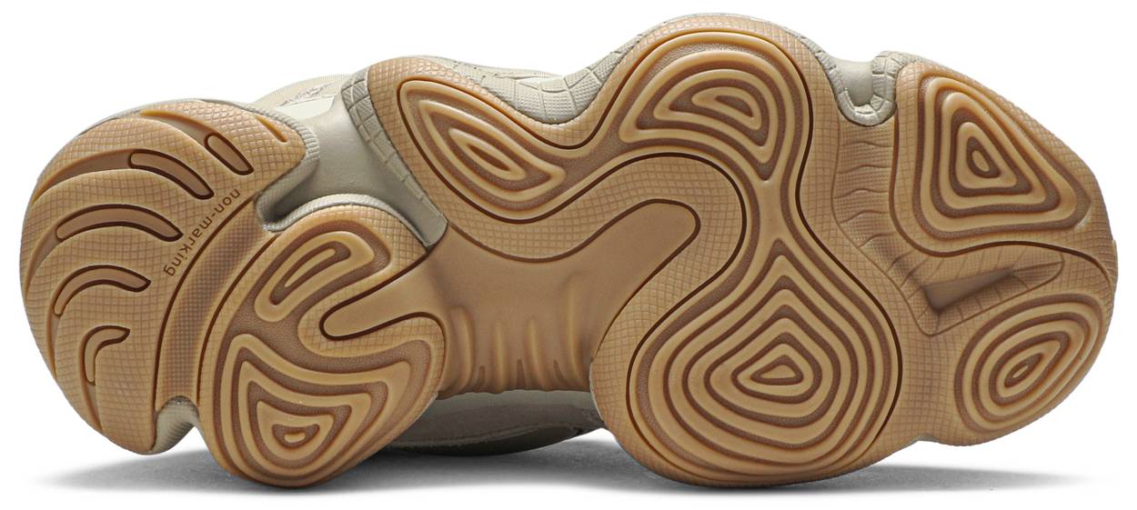 The adidas Yeezy 500 fuses the German brand's retro design principles and Kanye West's affinity for future-forward industrialism. Rendered in Stone mesh, this iteration—issued in November 2019—hosts tonal leather and suede panels, matching laces threaded through a tongue overlay and reflective piping. The sneaker utilizes a distinctive midsole with Adiprene technology for cushioned support and a curved gum rubber outsole.