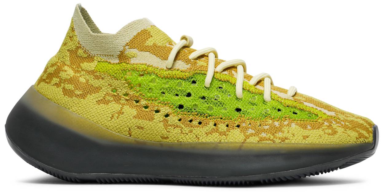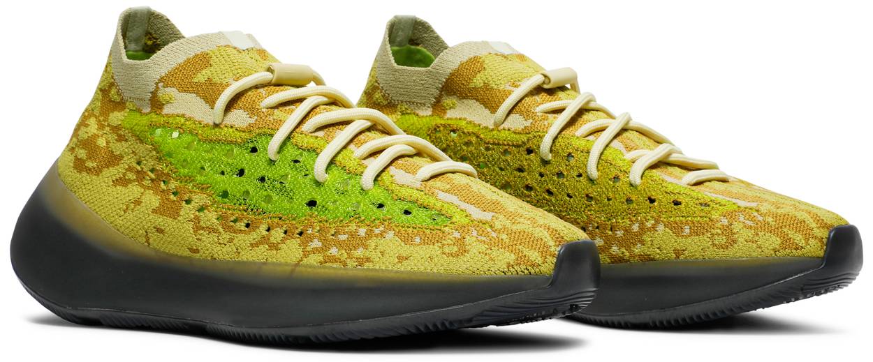 The adidas Yeezy Boost 380 ‘Hylte’ features an eye-catching color scheme that strays from the signature Yeezy palette, which traditionally leans heavily on muted earth tones. A splash of fluorescent green is applied to the the sneaker’s translucent monofilament window, contrasted by the camo-like tan and yellow composition that makes up the Primeknit upper. Standard Boost cushioning is enveloped in grey rubber and reinforced with a herringbone-traction outsole.