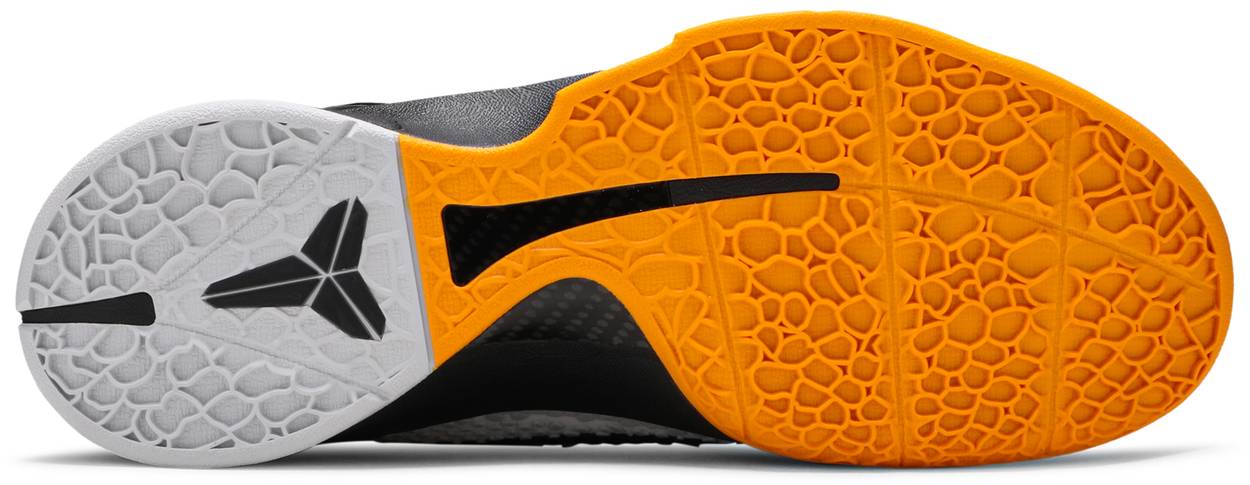 The Nike Zoom Kobe 6 Protro ‘White Del Sol’ brings back the original ‘POP’ colorway from 2011, updated with refreshed tooling and a sleeker shape. Polyurethane ‘islands’ create a scaly texture on the white and grey upper, fortified with a black molded heel counter and accented with a matching black Swoosh. The Cushlon midsole packs a large and flexible Air Zoom Turbo unit in the forefoot, along with a softer foam compound in the heel. Underfoot, the rubber outsole features a snakeskin-inspired traction pattern for maximum grip.